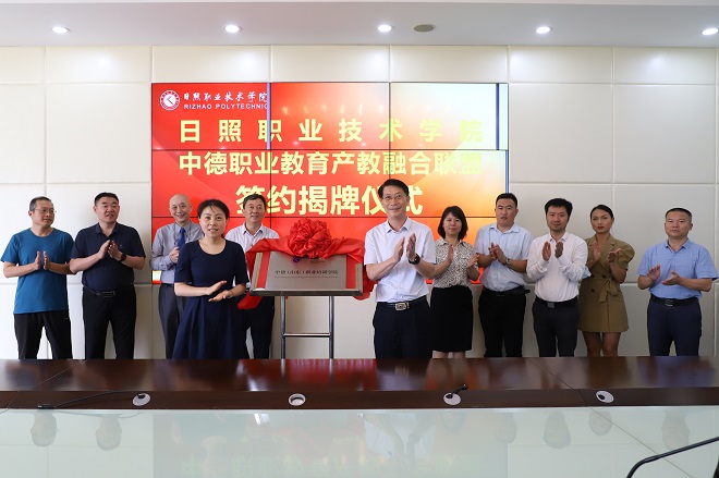 7月19日上午,我校与中德职业教育产教融合联盟签约揭牌仪式在学校天润楼209会议室举行。中德职业教育产教融合联盟常务副秘书长李杏丽,德国卡尔·杜伊斯堡公益中心北京代表处首席代表刘英泽,德国GFM教育集团中国区代表、台州职业技术学院中德学院常务副理事长、中德制造业研修院中德职业教育顾问王克,山东曼宁智能科技有限公司商务拓展总监赵敏等德国职业教育领域企业代表出席仪式,市外办党组成员、副主任高娟,我校党委委员、副院长韩振,相关二级学院主要负责人出席仪式。仪式由院长助理、国际合作与交流中心主任丁立孝主持。